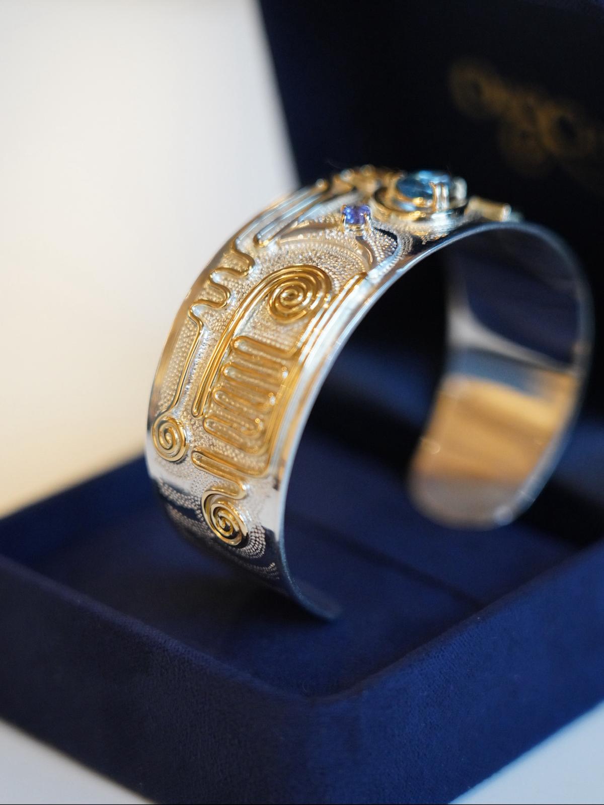 托特內在和諧迴路吊墜 這款吊墜的靈感來自聖劍王者之劍(Excalibur)的象徵意義。 這款吊墜的基本結構採用最高貴的月亮金屬之一——925銀打造,為珠寶帶來陰性面向。賽爾菲克迴路的結構和所有細小的螺旋線圈都採用18K黃金製作,這是一種太陽金屬,代表陽性面向。 鑲嵌在劍「刃」上的 Selfic 迴路 (Harmony Circuit) 的功能是培養我們內在的和諧,使我們能夠更自然地順應事件,創造快樂的生活。 選擇這個 Selfic 迴路是因為我們是由許多面向組成的複雜存在——這些人格受不同的慾望、情緒和記憶驅動。 此 Circuit 幫助您以和諧平衡的方式表達您的不同面向。它根據您的個人頻率準備,以調諧您的能量。...