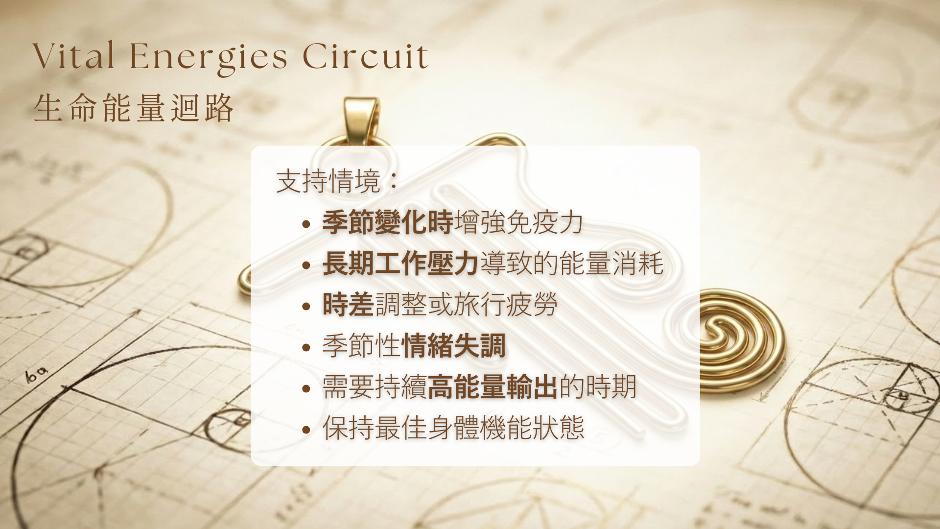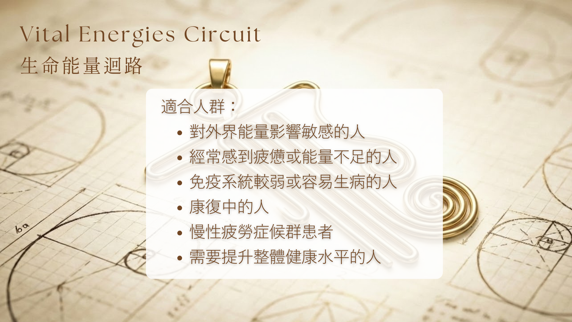 生命能量迴路是您的能量充電站和防護盾,幫助您在快節奏、高壓力的現代生活中維持強健的生命力,讓身體這台精密機器始終運轉在最佳狀態。